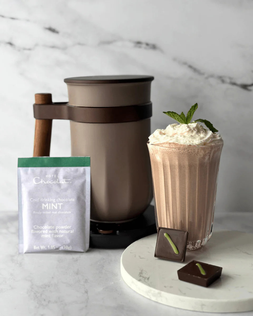 Chill out this summer with rich, iced drinking chocolate. Our finely milled chocolate melds perfectly into cold milk (or milk alternatives), check out some recipes below!